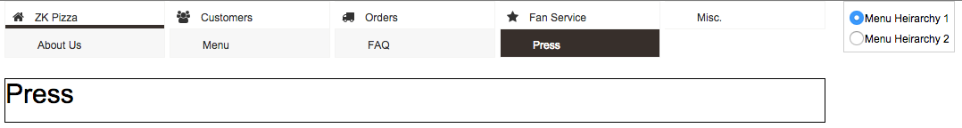 The menu is made by templates containing shadow components, and it can render different menu hierarchies without any change. You can switch 2 sets of menu hierarchy via the radio group on the right hand side. This example demonstrates how to reuse a common view pattern.